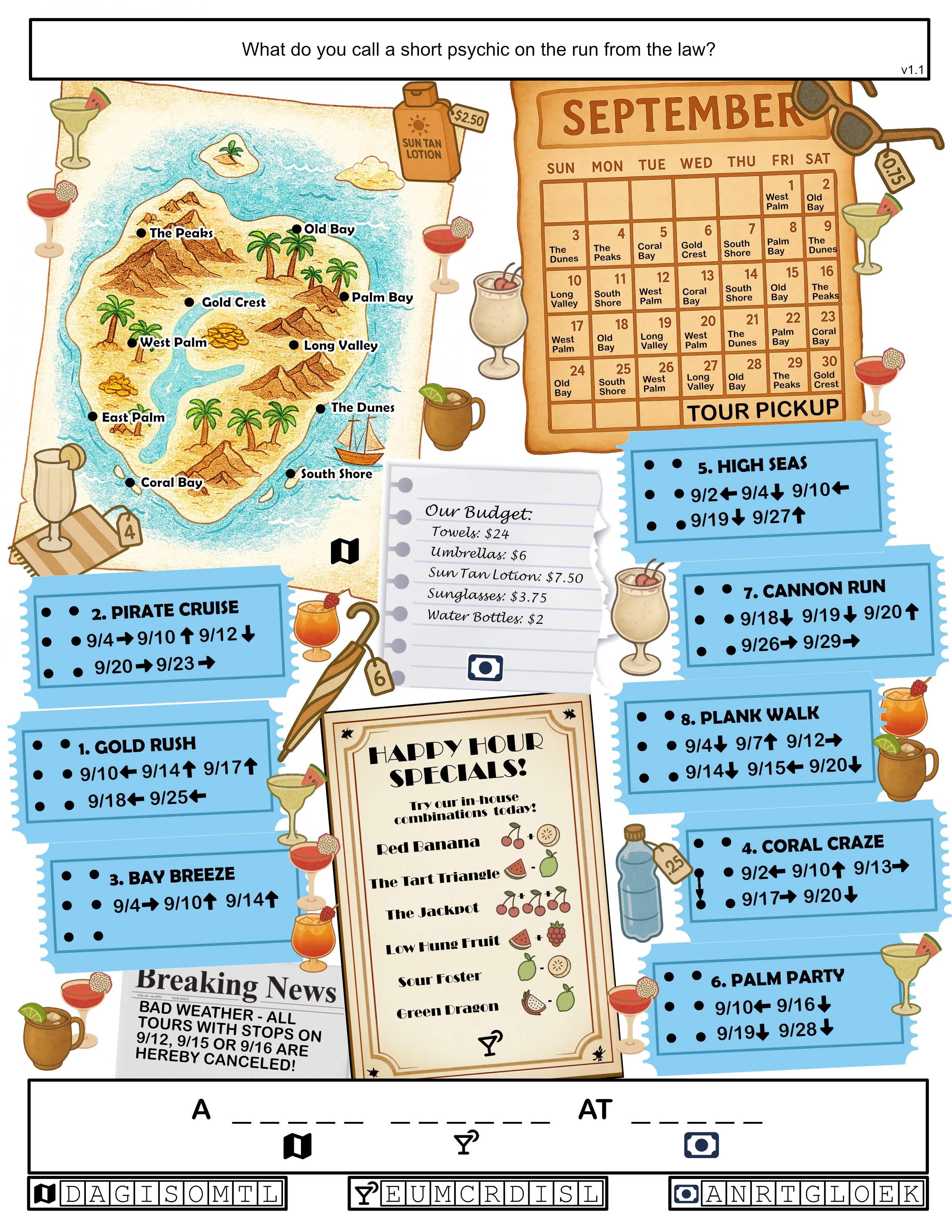A pen and paper escape-room puzzle where each puzzle's a joke and the punchline is the solution.